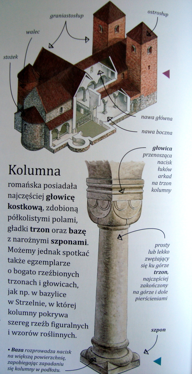 "Kościoły romańskie miały bardzo gruba ściany, konieczne do przenoszenia na podłoże ciężaru kolebkowych sklepień i dachu. W budowlach gotyckich, dzięki zastosowaniu sklepień ostrołukowych z żebrami - kierujących ciężar sklepienia na filary, łuki oporowe i przypory - ściany przestały pełnić funkcję konstrukcyjną. Mogły być cieńsze, wyższe i posiadać ogromne, wypełnione witrażami okna."